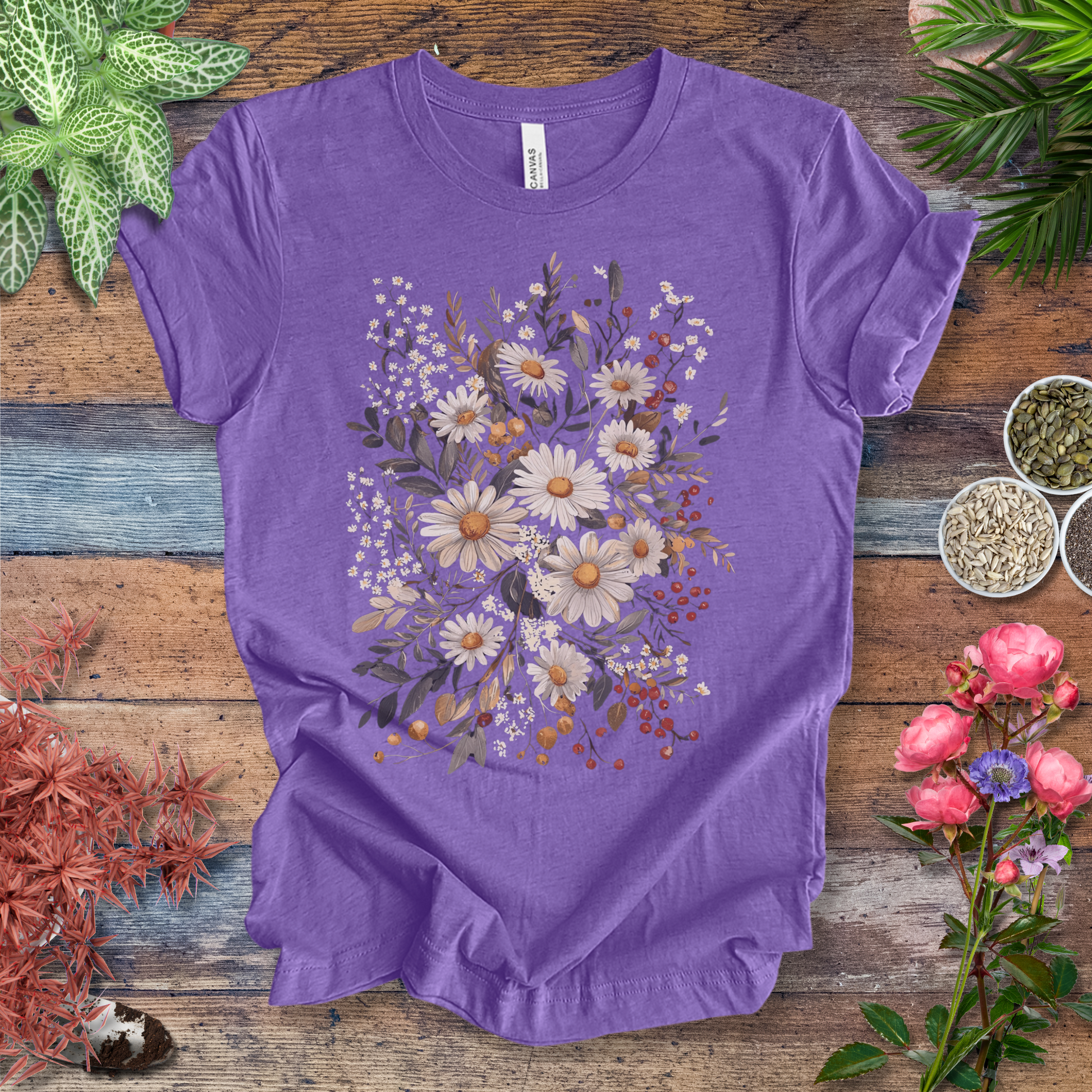 Brighten up your day with this charming rustic daisy bouquet design! 🌼✨ With warm earthy tones and delicate wildflowers, this t-shirt is perfect for casual wear or gifting to flower lovers. Embrace the countryside charm and make a bold yet sweet floral statement.